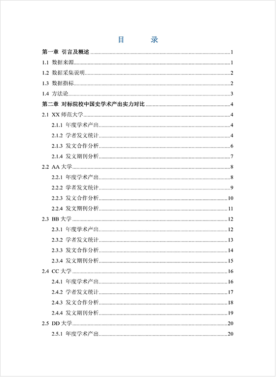 《XX大学XX学科竞争力分析报告》、《XX大学ESI学科分析报告》、《XX领域研究热点前沿分析报告》。